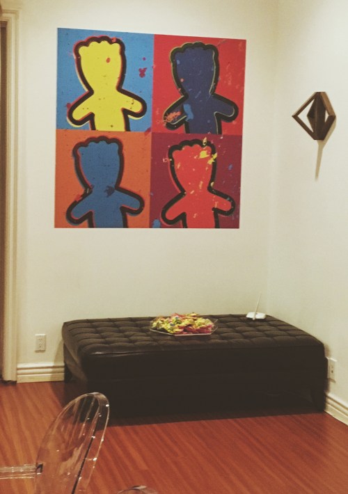 There were Sourpatch paintings, Sourpatch pillows, vases everywhere filled with the vibrant, rainbow-colored little people… It was some real Willy Wonka shit.