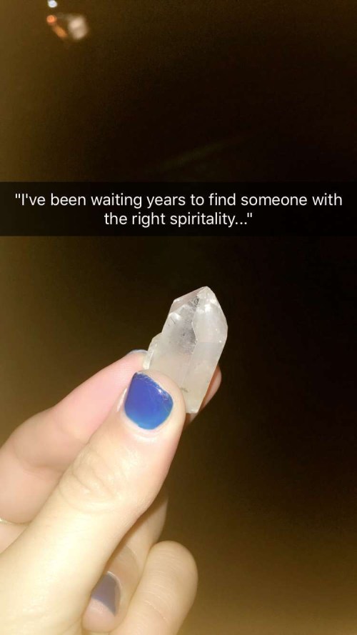 Him: “I always keep this crystal with me. I’ve been waiting years to pass it on to a person with the right spirituality and that person is you. You have the greatest energy. So now is your turn; hold onto it, and when the time is right, pass it on.”