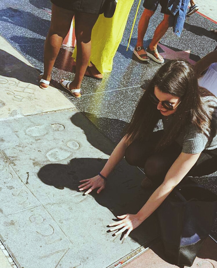 57. Check out celebrity hand and footprints in front of TCL Chinese Theatre – Below: Kayla admires the slab of cement dedicated to America’s most cherished actor, Nic Cage